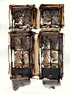 Quelques coups de sépia assombris de gris de Payne pour faire émerger une façade sauvage avec sa poulie relique du vieux Boulogne. Les toits de chaume au Hameau de Marie Antoinette enchantent le peintre par un jeu subtil de matières.