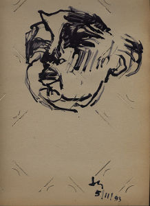 La plume, elle sème son ouvrage, mais perdue dans une souffrance inconnue cherche un dialogue sous une déchirure pour renaître. Le livre, la mémoire, pour un appel, dans sa détresse, le visage piège son théâtre pour une profondeur de lumière. Des sons de musique soufflent l'entrée dans l'invisible sous un regard obstiné pour un éternel.