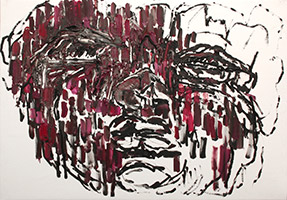des regards abîmés dans une contemplation musicale fixent l’avenir. Un nez violemment projeté en avant sépare la figure en deux. La bouche